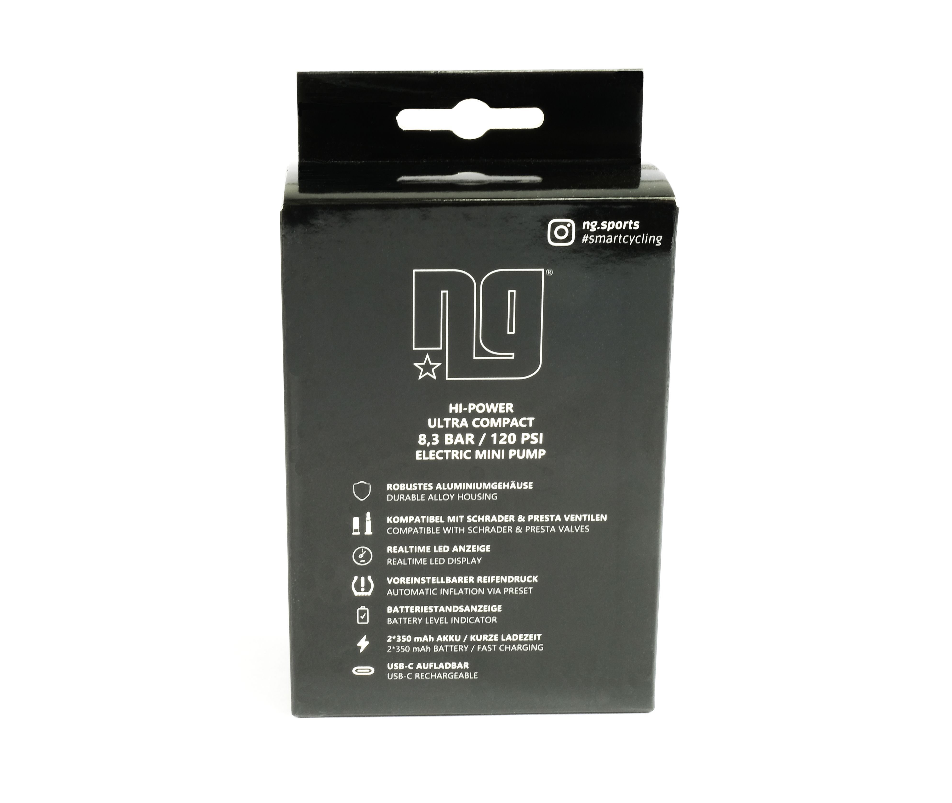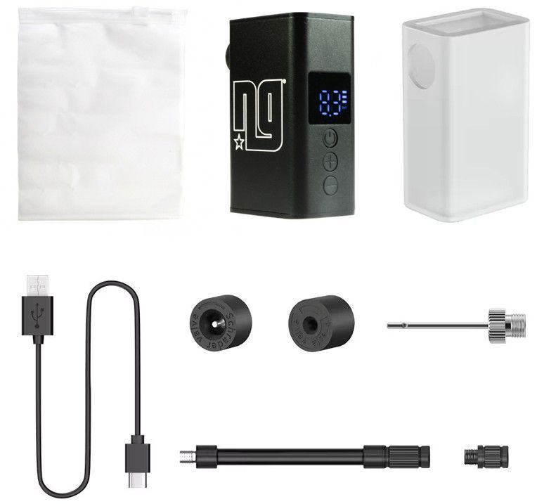 - Lieferumfang: Silikon-Schutzhülle, wasserdichte Hülle, USB-C Kabel, Verlängerungsschlauch, Ventilaufsatz, Schrader- und Presta Ventil, Adapter für Bälle
